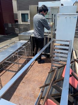 使い込まれて汚れている厨房機器も数日後にはテンポスの店頭に並ぶ立派な商品です。