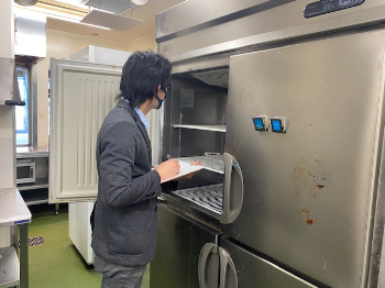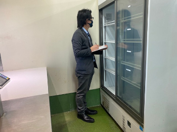 経験豊富なスタッフは業務用冷蔵庫や冷蔵ショーケースに標準で付属している棚板の枚数や排水タンクなどを熟知しているため短時間でリストに記入していきます。