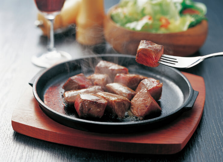 サイコロステーキがサイコロ形なのは、食べやすさ・調理のしやすさ・成形肉との相性の良よさ。そして、日本の食文化に適しているためです。